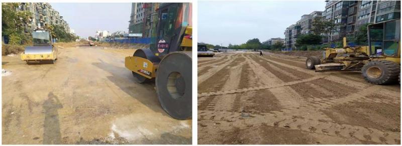 前園路(大強(qiáng)路-葛大店路)土方外運(yùn)完成80%,污水管道完成95%,雨水管道完成75%,路基灰土完成35%。